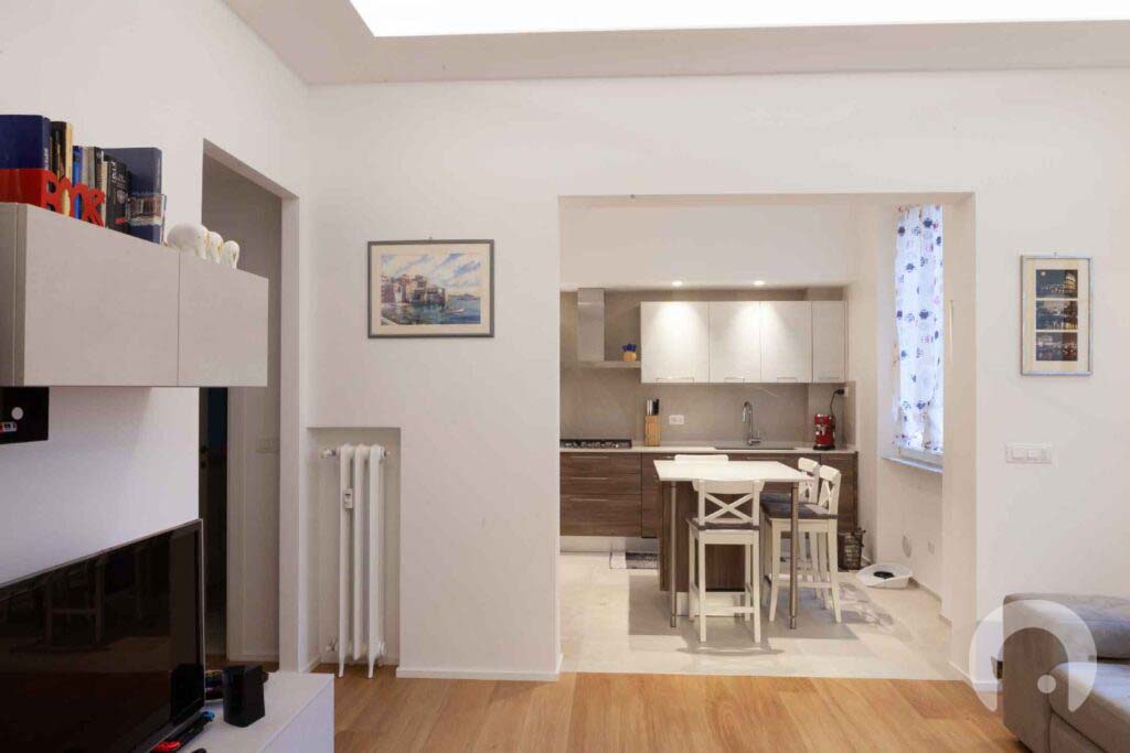 La ristrutturazione di questo appartamento a Genova, nella zona di Albaro, ha permesso ai proprietari di avere tre camere da letto e due bagni, separare in modo netto la zona giorno dalla zona notte e dai servizi, eliminare nicchie e linee curve per favorire varchi lineari e quadrati e ottimizzare al massimo gli spazi per ricavare dispense, ripostigli e lavanderie.