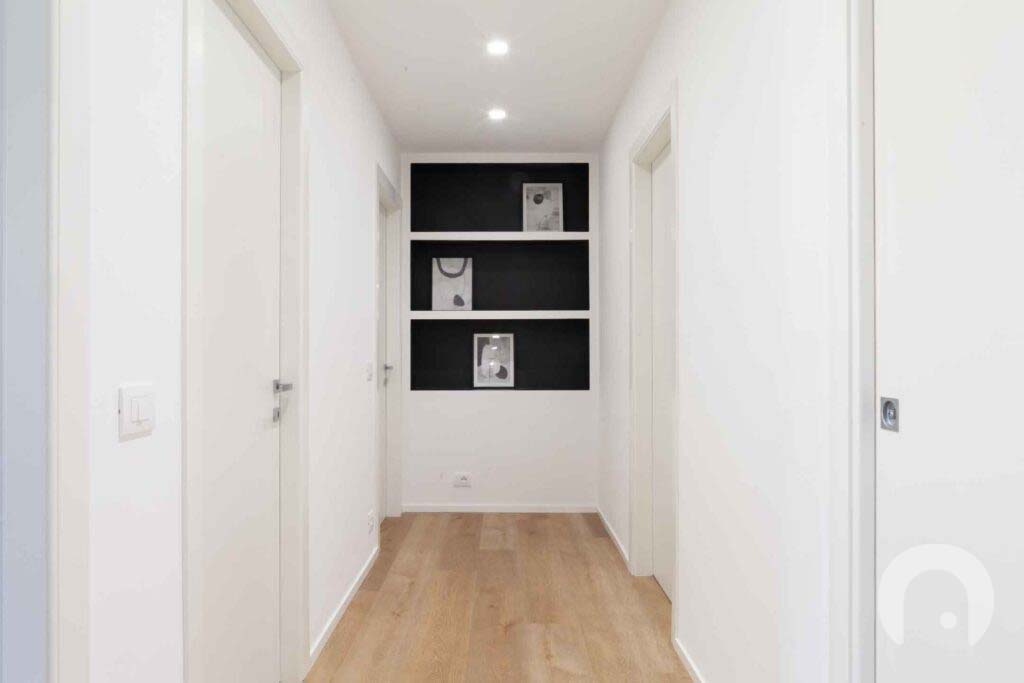 Alla graniglia il cliente ha preferito il parquet, per aumentare otticamente la spazialità degli ambienti, valorizzandone la luminosità. Il legno, caldo e accogliente, lo accompagna di stanza in stanza, ciascuna rinnovata da nuove finiture e trasformata da tocchi di design e tagli di luce.